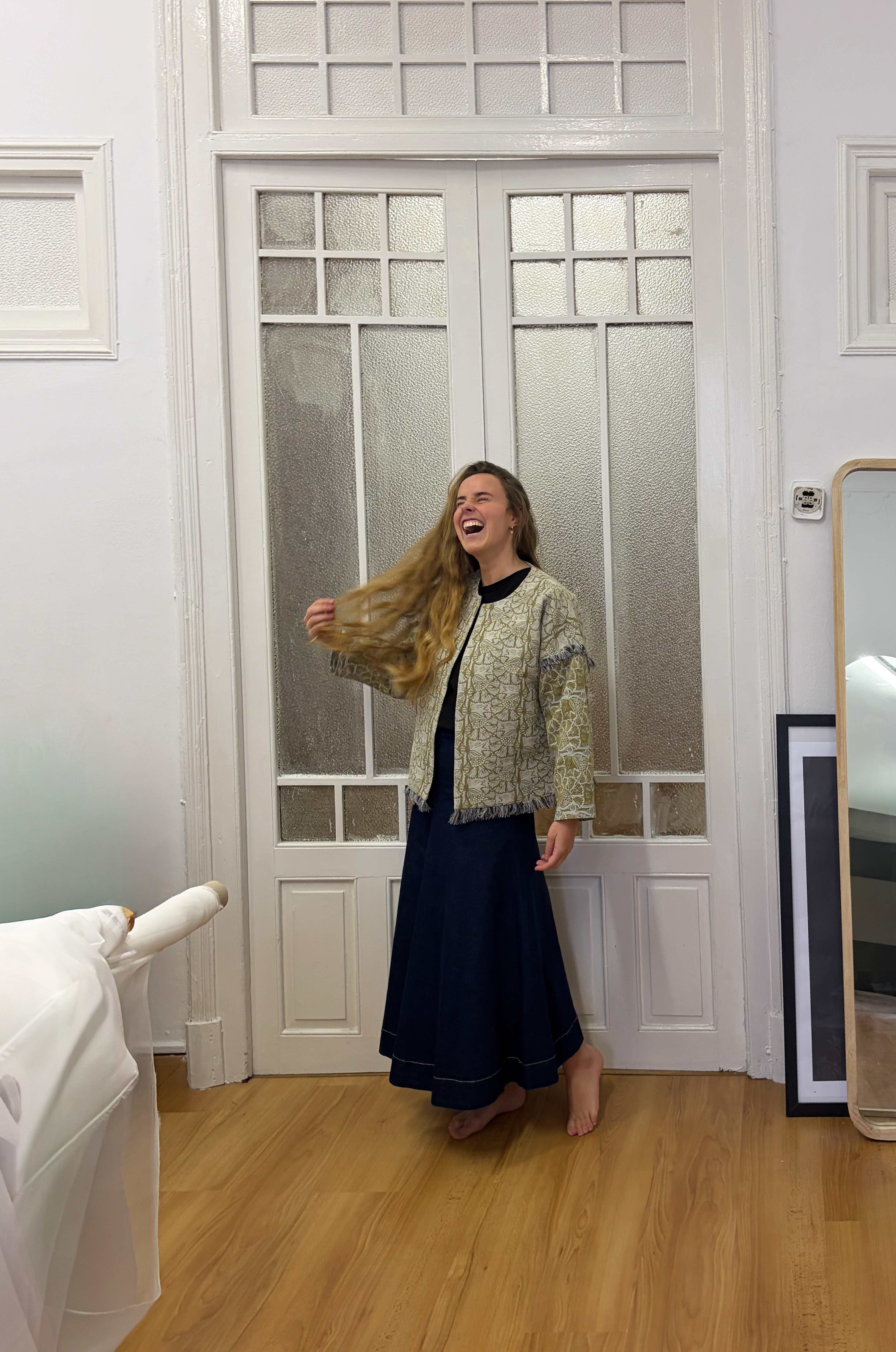 Chaqueta fleco flor verde